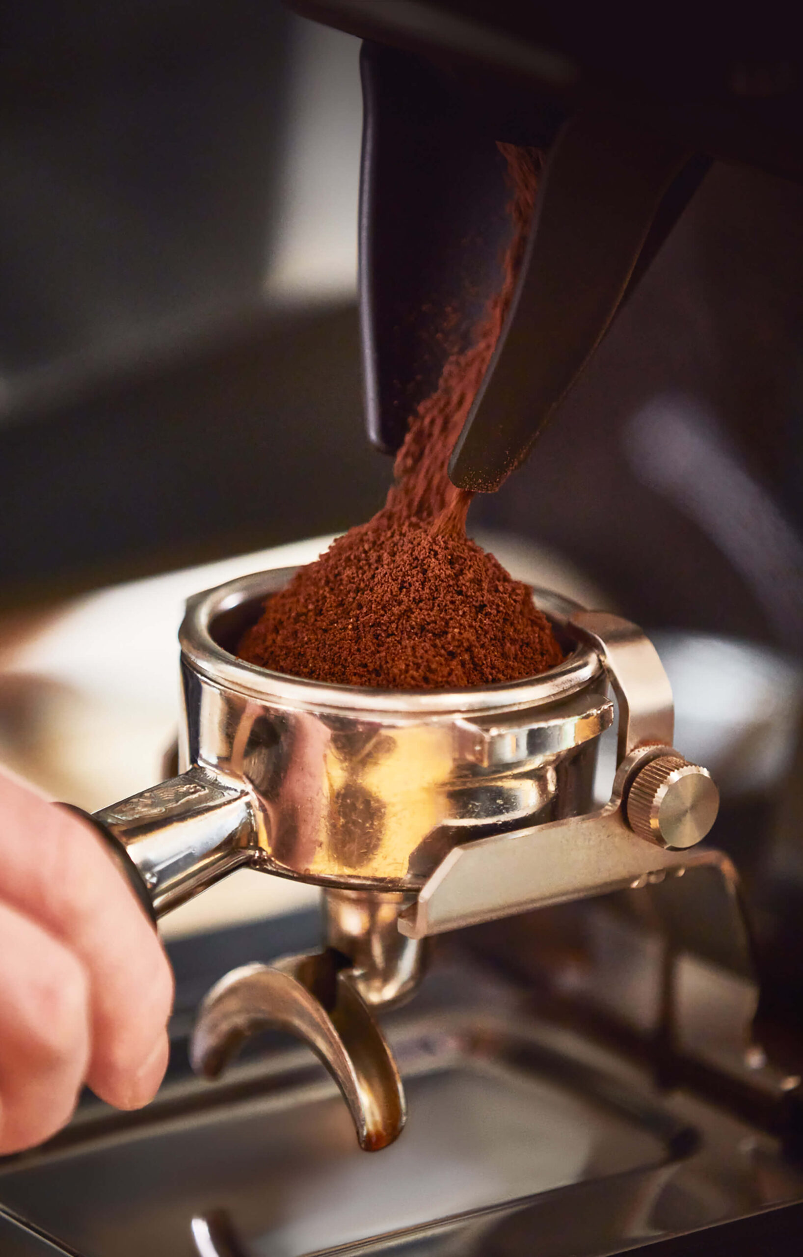 The Swan uses the conductivity of the portafilter as the sensor to activate grinding. This system is free of moving parts, ensuring reliability.